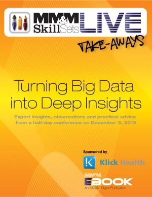 | Missed the MM&M Skill Sets Live event on Big Data on December 3? Here’s your chance to get up to speed... The book of take-aways is now available! CLICK HERE to download. Access this insightful e-book today for highlights on the following sessions: - Multi-Channel Measurement and Customer Insights in a Brave New Big Data World: Big Data Opportunities and Challenges for Marketers